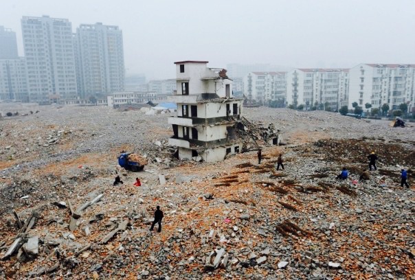 Car depuis 2000 dans un contexte d’explosion de l’économie Chinoise, une loi établit la notion de propriété privé, élémentaire. Ainsi un dédommagement doit être négocié avec les propriétaires pour qu’ils quittent leurs habitations. Bien souvent, les indemnisations proposées sont dérisoires et les négociations perdurent plus de dix ans.