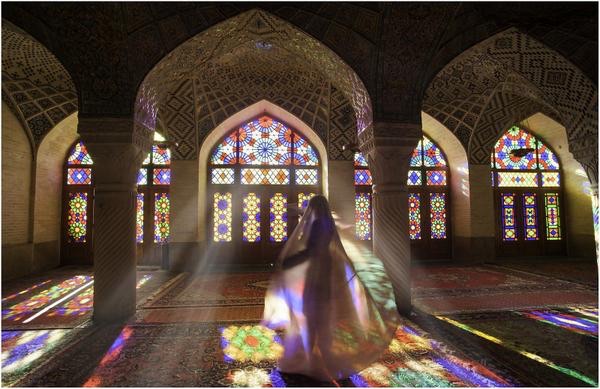« La vue des rayons du soleil à travers les vitraux colorés, qui retombent ensuite sur les tapis persans, est tellement envoûtante qu’elle semble venir d’un autre monde. Même si vous êtes la personne la moins croyante au monde, vous sentirez probablement vos mains se rejoindre naturellement en signe de prière lorsque vous verrez l’éclat de cette lumière. Les constructeurs de cette mosquée ont peut-être voulu montrer leur « foi » à travers la lumière du petit matin qui scintille à travers le vitrail. », confie Koach, un photographe Japonais.