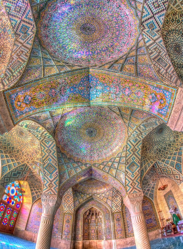 Construite de 1876 à 1888 à Shiraz ancienne capitale Perse, Nasir-ol-Molk, au delà de son aspect hypnotique et nécromant, fascine par un design architectural à part, où symétrie et perspective forment un duo de choc. Des Mille et Une Nuits aux Mille et un matins!