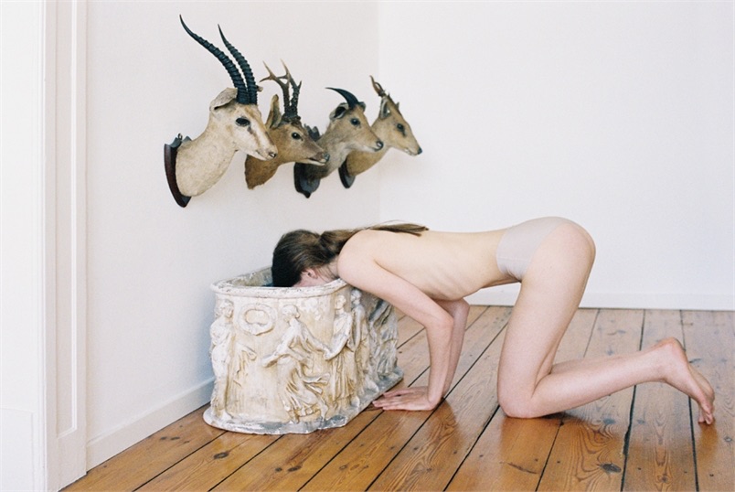 Deux, trois filles dérangées mais statiques. Un intérieur maniaco-esthétique. Le photographe-architecte Can Dagarslani sécrète une réalité parallèle où la femme aussi sophistiquée soit elle, ingurgite des balles de ping pong, se plie en quatre dans un meuble en métal, s’animalise assoiffée sur un parquet ciré avant de pleurer ses cheveux.