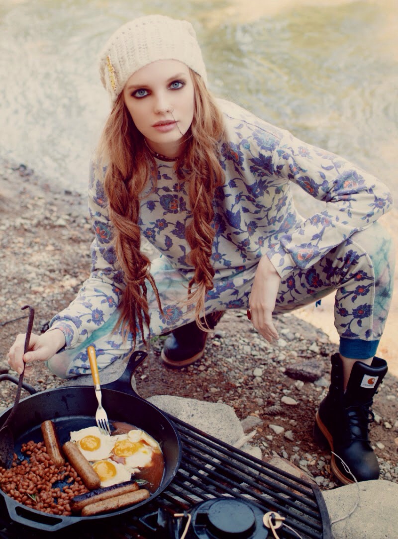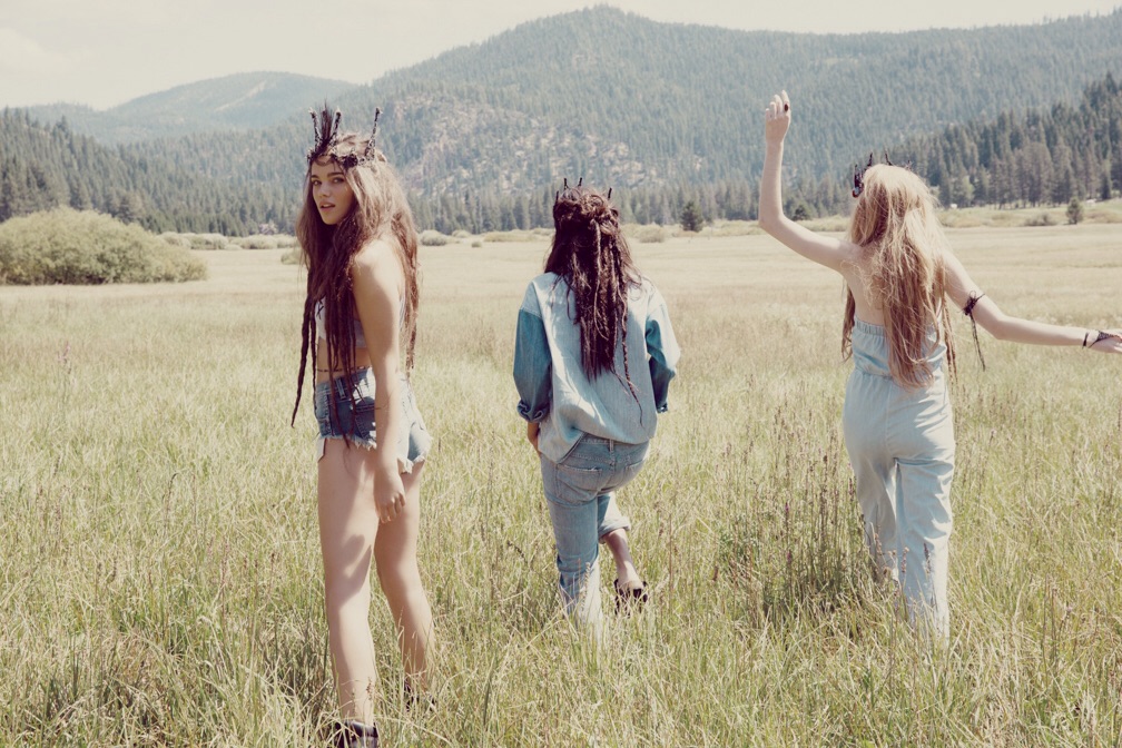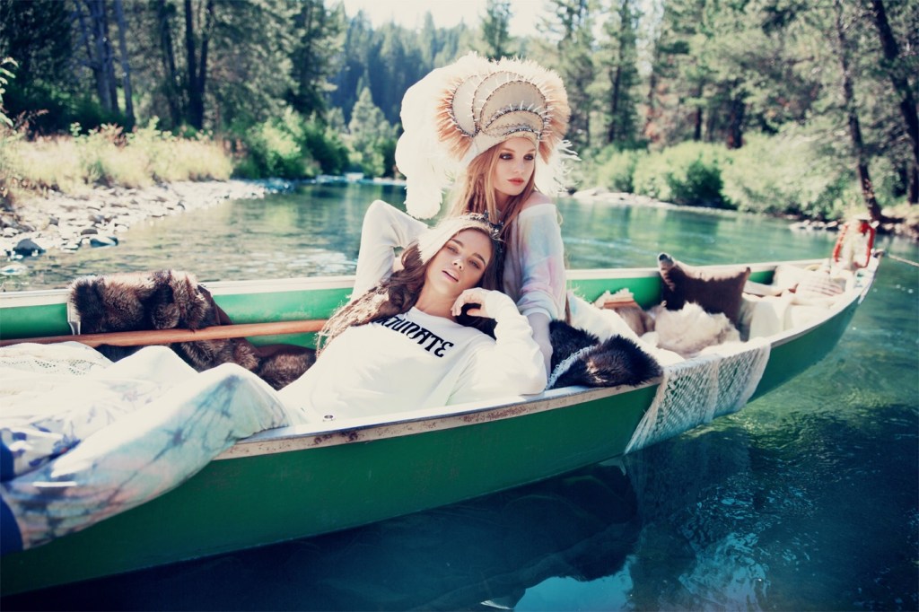 Chez Wildfox, le principe est rodé, une saison, une histoire et des clins d’oeil. Cette fois : Un gang de nanas (Jena Goldsack, Alyssah Ali, Clare Settje), maquillées de passion et de courage, en mode rien à perdre avec un sentiment de ras-le-bol du macadam. La terre les ravive, alors elles squattent les bois, hypnotisent les garçons et vivent de petits boulots pour se faire un peu de blé. En plein dans l’esprit road trip.
