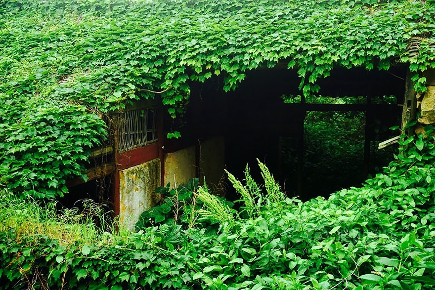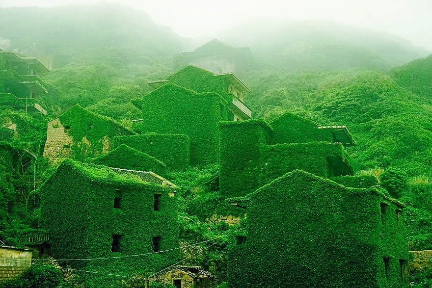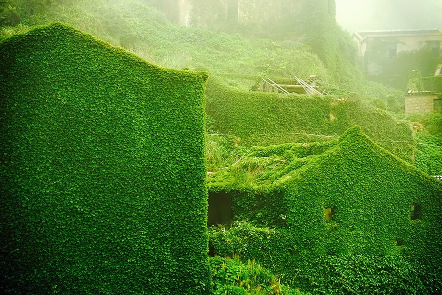 Le photographe Tang Yuhong s’est rendu sur cet archipel de 400 îles. Après avoir amarré à Goqui island, cet amateur de ruin porn se retrouva vite nez à nez avec une nature dominante, les pierres des maisons ayant été englouties par une poussée vertigineuse de lierres et de plantes d’un vert contrastant avec les gratte-ciels du pays.
