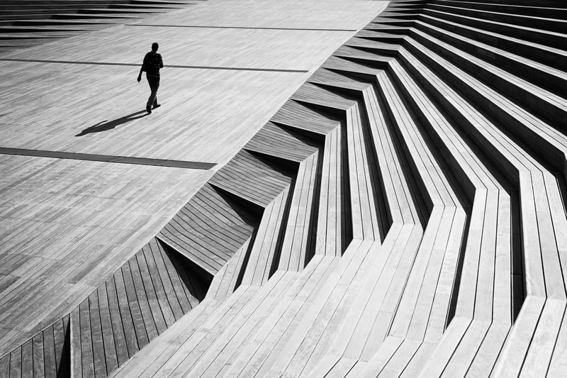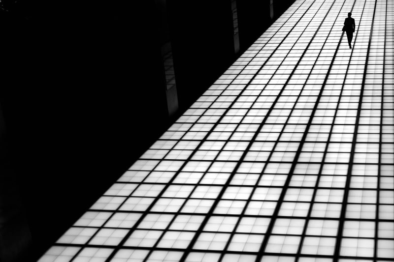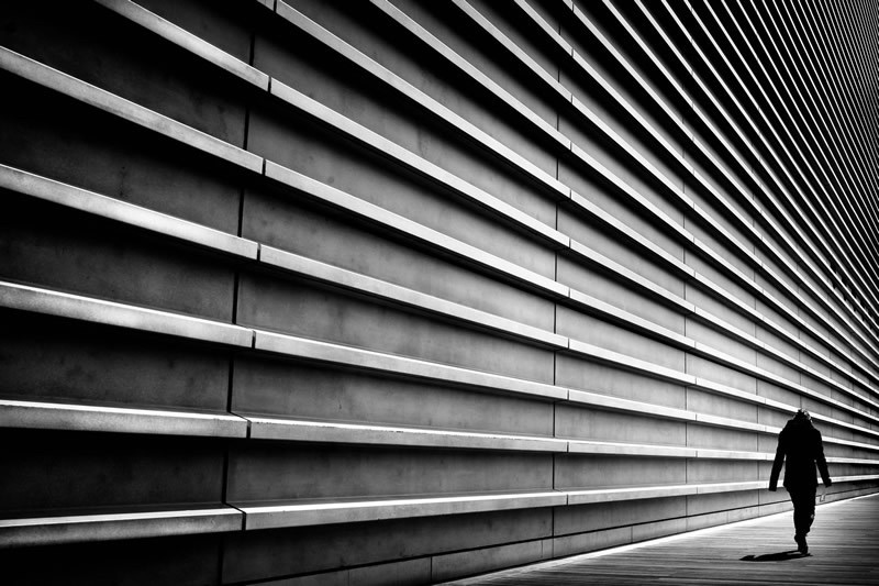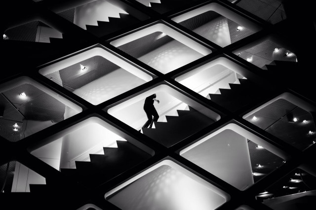 -Noir c’est noir , il n’a plus d’espoir- Un leica M monochrom, des angles de vues subtiles braqués sur une figure solitaire errante et obscure, le photographe japonais Junichi Hakayoma s’amourache du duo ombre et lumière dans des espaces urbains géométriques. A l’instar du café carte noire, ses clichés sont nommés « désir ».