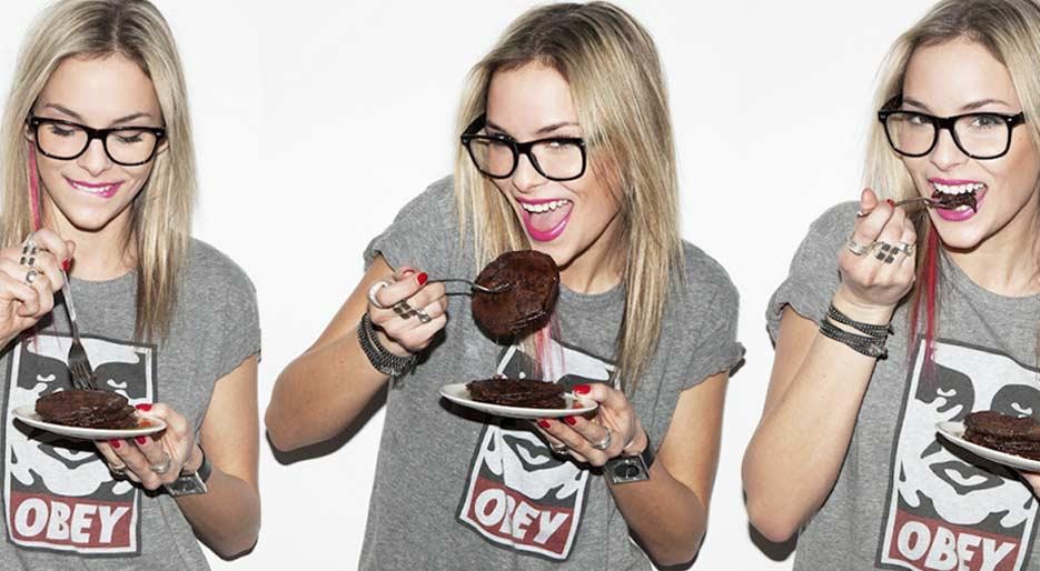 Ainsi une flotte de mannequins professionnels ou novices se lâchent devant l’objectif, exhibant d’un air espiègle, une multitude de créations culinaires, friandises, desserts, salades, snacks, toutes aussi fun que saines et diététiques, exception faite au chocolat souvent en première ligne!