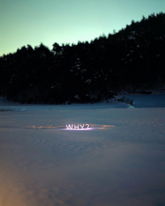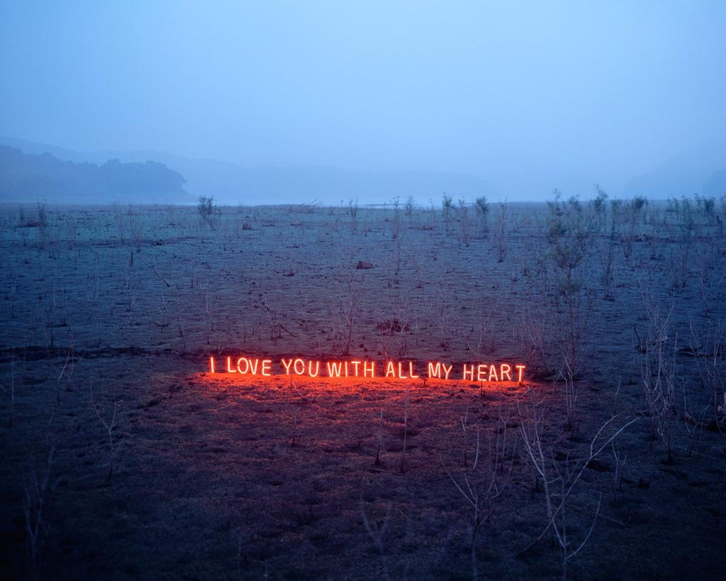 Des noms de films tels « P.S : I Love You », des pensées à l’eau de rose « je t’aime de tout mon coeur » ou des phrases que le peuple Nord Coréen est forcé de réciter aux touristes, « notre pays est le paradis des peuples », l’artiste Jung Lee et ses mots de néons, aborde le « big love » et fait de la politique les pieds dans la neige!