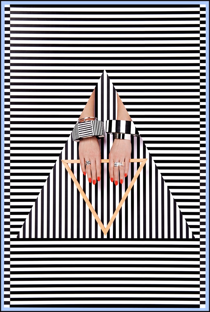 Sa touche? Des couleurs à décoller la rétine, des imprimés africains à faire sourire comme un smiley, une typo parfois proche de celle utilisée par M.I.A sur la cover de son album Kala, des lignes zébrées adossées à une géométrie tout azimut à base de triangles : En bref de la tribal pop en barre!