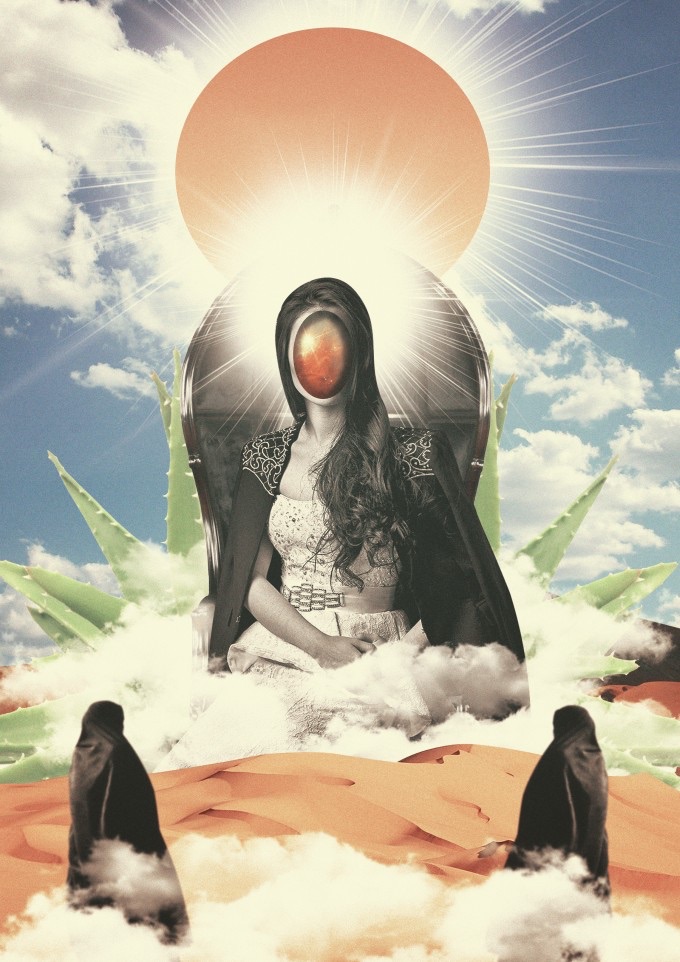 Des collages bizarroïdes vibrants, au codage rétro-futuriste, hacké par une horde d’allusions ethniques, le frenchie zélé Khan Nova toujours englué dans ses études de graphiste, épate déjà autant qu’il téléporte dans ses déserts surréalistes.