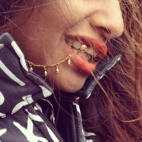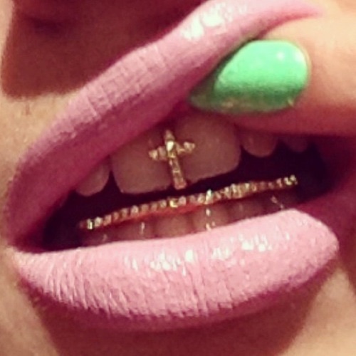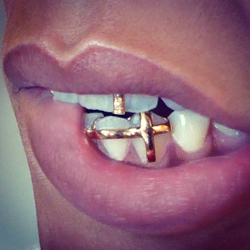 Effet de mode, appropriation des codes de vrais bad boys, ou délire d’exhiber un sourire d’enfer. Depuis 2013, le monde people se la joue étrangement gangsta, démesurément accros aux bijoux de bouche, aussi sulfureux que synonyme de bof bof soient-ils. Super gogo, les filles les plus influentes du moment en ont fait l’acquisition… M.I.A, Madonna, Rihanna avec son grillz en forme d’AK-47 et son dernier bébé « grill sur deux dents avec piercing » visible dans son dernier clip « Bitch Better Have My Money » ou C.Delevingne , la dernière à avoir fait le grand saut optant pour les initiales Cara sur la rangée du haut, peut être dans l’espoir d’atténuer l’ultra épaisseur de ses sourcils!