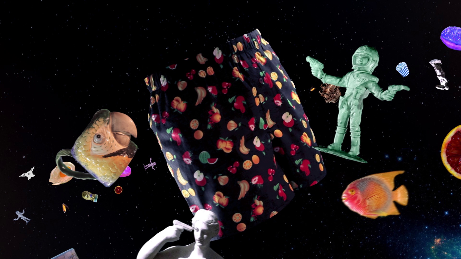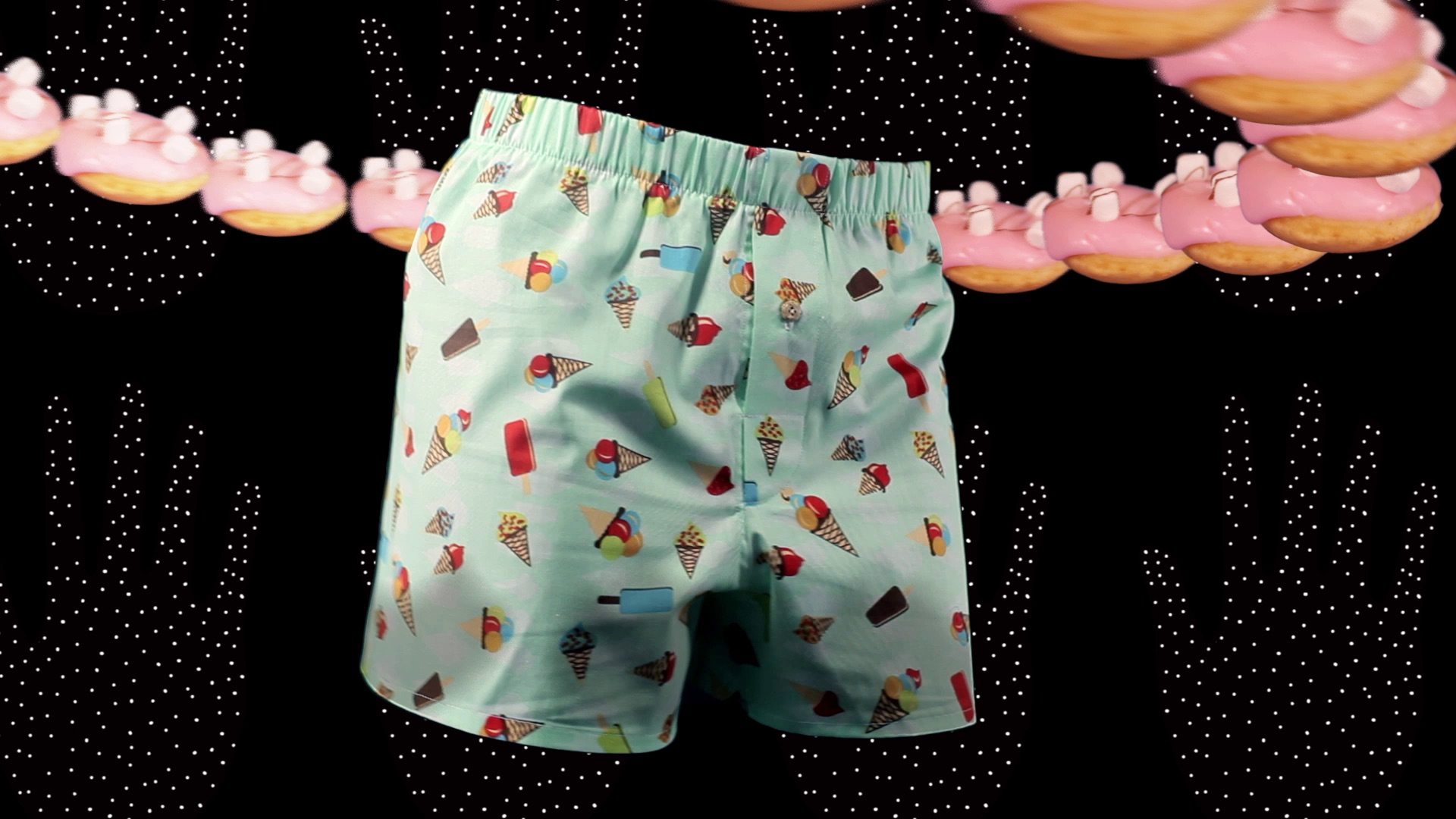 Le chic branché sous le pantalon. Avec ses motifs en cornets de glace, épis de maïs, aztèques et symboles gouachés à l’effet mister freeze, Damoiseaux surprend encore avec un lookbook au visuel décalé et artsy signé pastapastheque!