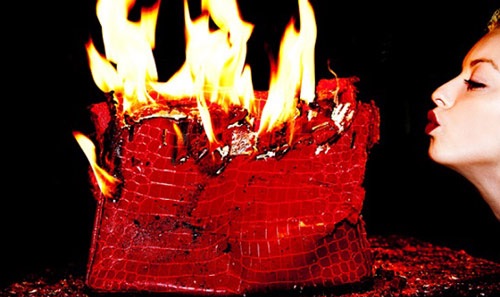 Pas comme les autres, j’ai connu la galère et le frigo vide étant gosse, ce qui ne m’a pas empêché de shooter avec insolence une série mettant en scène ma petite amie Francesca Eastwood, si orgasmique entrain de découper sans pitié à la tronçonneuse un sac Berkin en peau de croco rouge à 80 000 euros, avant de l’asperger d’essence et enfin l’achever par immolation, parce que « la destruction est une plus belle version de la liberté ». Une ultime performance artistique, un chef d’oeuvre trop fun perçu hélas comme une provocation gratuite, ce qui nous a par ailleurs valu des tweets du genre « Je vais te poignarder sale **** »! Ah décidément les gens ne connaissent rien à l’art!
