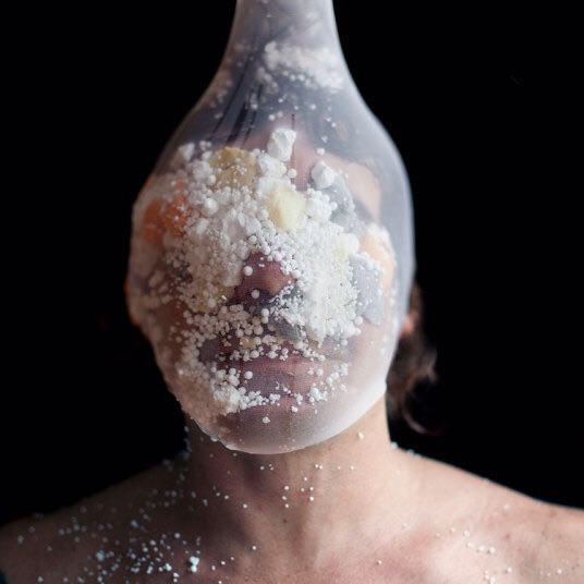 Vision oeil de poisson, ouïe de tuyau, odeur de charbon, touché de plume et goût de poivron , dans sa série « Sensorial Self-portraits » Edu Monteiro cherche à manipuler les 5 sens dans une fiction personnelle inspirée d’un masque d’auto-analyse à effet clinique de l’artiste Lygia Clark.