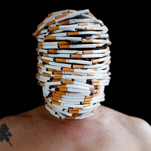 Humour décalé et auto-portraits étranges couverts de sens, le plasticien brésilien Edu Monteiro se camoufle le visage avec des cigarettes, des peluches ou des animaux et cela lui va comme un gant!