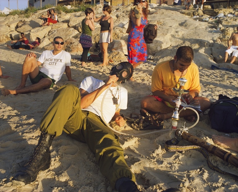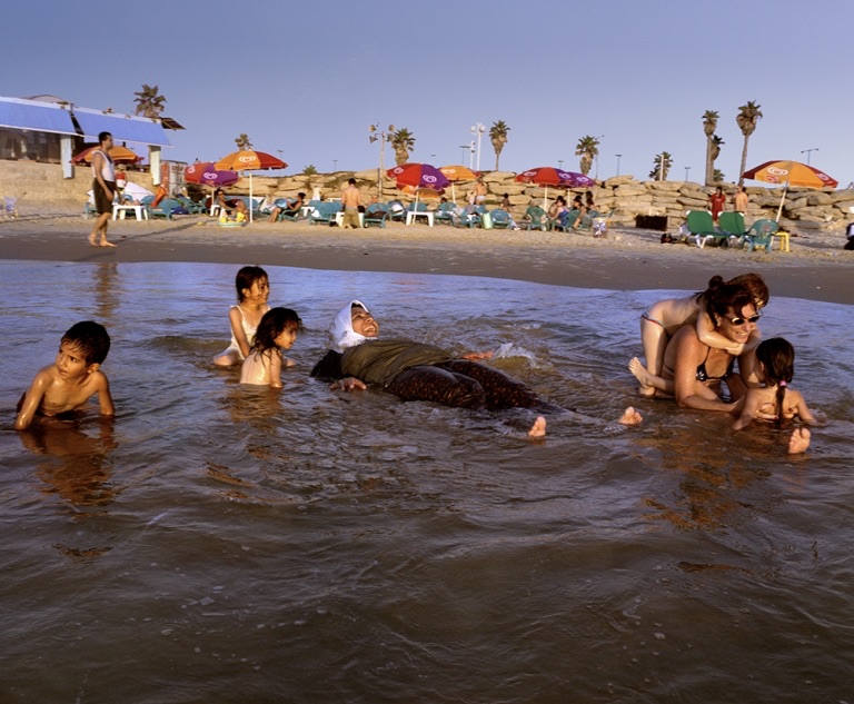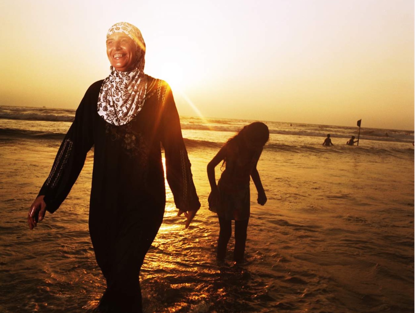 A la place, se pavanent au soleil tolérance et ouverture d’esprit. Tel Aviv, dit la « Bulle », a beau être située à 60km d’un conflit macabre et sans fin, elle n’en est pas moins un havre de relaxation, de fun et de thérapie face à l’oppression! Pour comprendre, il suffit d’arpenter son bord de mer avec la photographe New-Yorkaise Gillian Laub, là même où « le pays peut vivre et discuter en paix » s’enthousiaste-elle. Si certaines zones sont réservées aux juifs, aux homosexuels et aux touristes, une plage se distingue par sa mixité, arabes couverts de la tête aux pieds et juifs orthodoxes s’y prélassent ensemble sans animosité et s’en amusent dans les vagues ! Le saviez-vous? Israël compte 20% d’arabes et 82% d’entres eux sont musulmans.