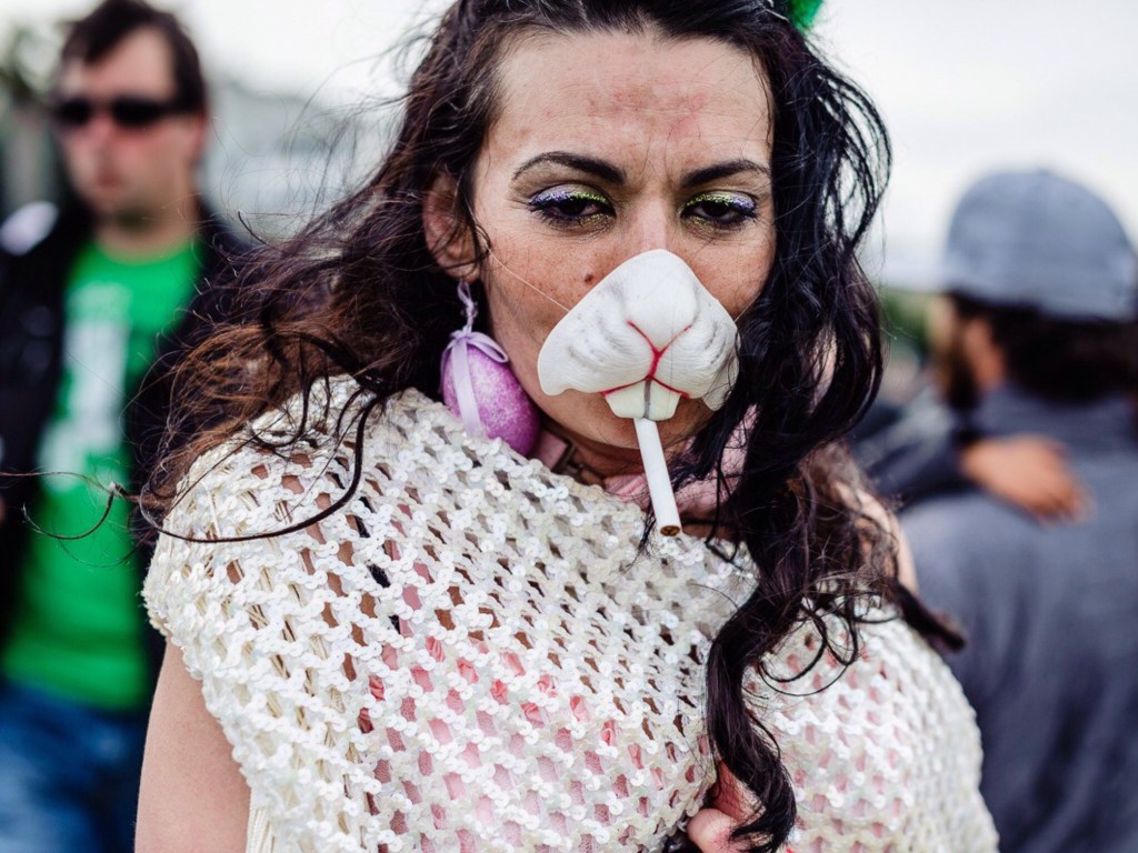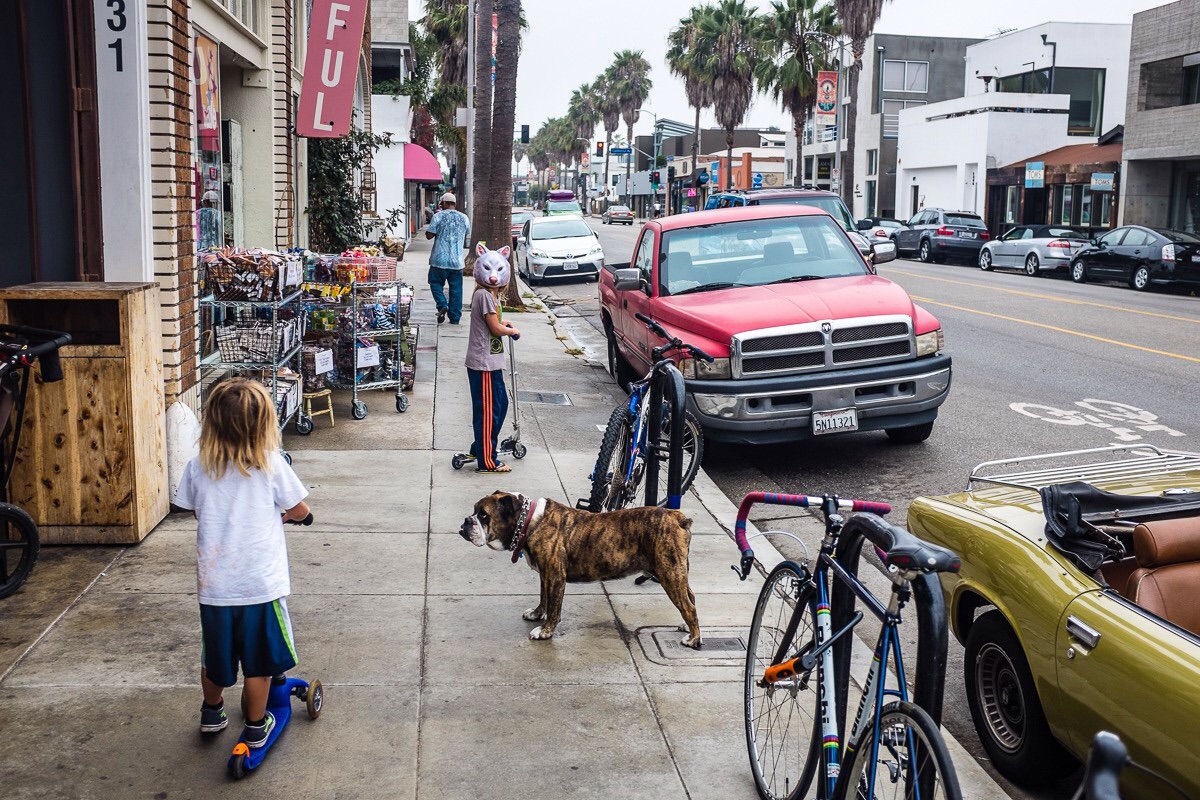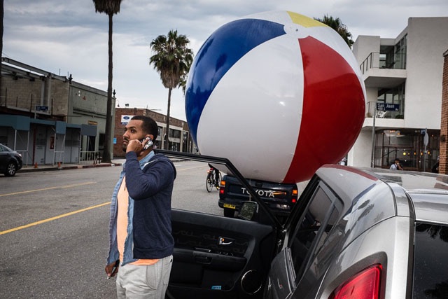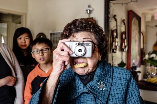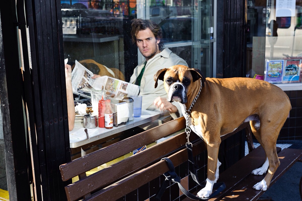La vie quotidienne américaine selon Jack Simon prend des airs de fiction dont les scènes sont directement extraites de films oubliés. Ses clichés tous shootés sur le vif reflètent le caractère imprévisible et candide de l’espace public urbain de San Francisco et d’ailleurs, une fumeuse au nez de lapin, une frimousse à la tétine dentier monstrueux, un couple du troisième âge béat et figé devant une poitrine aguicheuse sur grand écran, un homme en peignoir au milieu de la nuit scrutant un probable OVNI en approche! Car au delà de son travail visuel léché et parfois trompe l’oeil, ce photographe à la notoriété de dernière minute cherche avant tout à évoquer des histoires dans l’esprit des téléspectateurs!