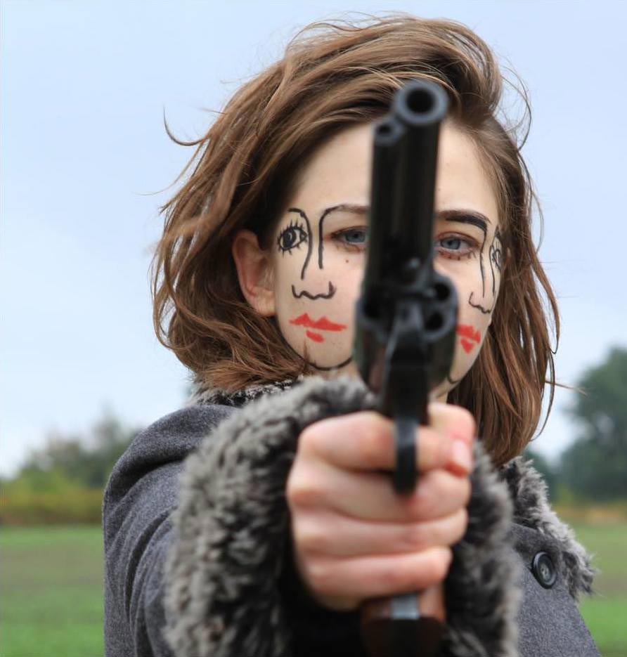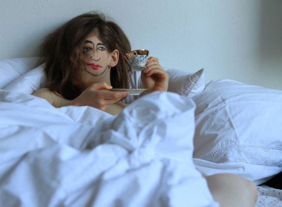 Bouche bée! L’art de Sebastian Bieniek est vivant quoique intriguant, il a des seins, se balade dans le métro, prend une douche, fume des clopes et joue la provoc avec son gun. La routine, à la seule différence qu’il altère la logique par l’absurde avec son visage deux ou trois en un. Oui comme pour beaucoup de schizophrènes ou non, plusieurs personnalités gravitent en lui d’où l’expression « révéler son vrai visage. »