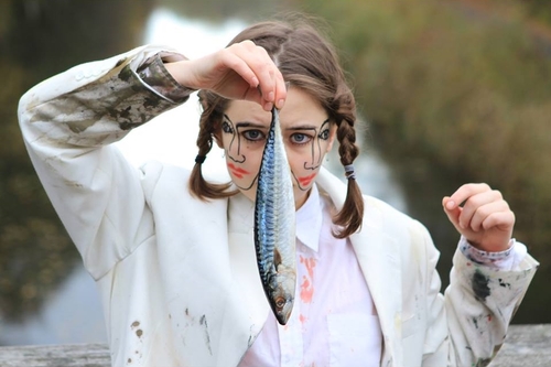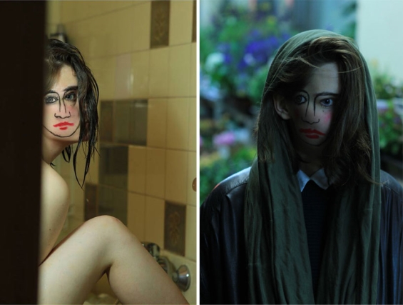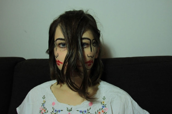 La formule est trompe l’oeil voir loufoque, un nez, une bouche, des sourcils griffonnés à la va-vite, à l’aide de rouge à lèvres et d’un eye-liner sur la moitié du faciès de cobayes féminins photogéniques, pour un effet glam patibulaire, c’est le projet « Doublefaced » de l’artiste polonais Sebastian Bieniek.