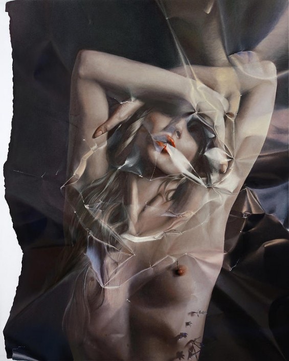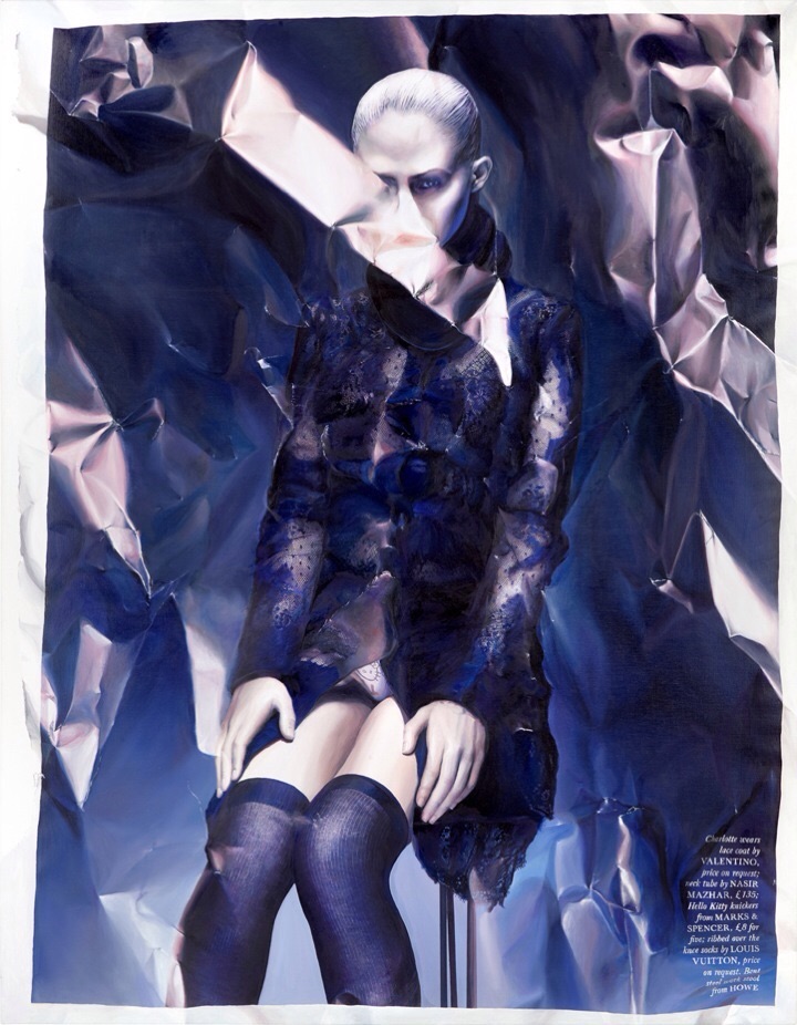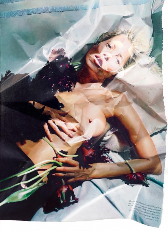 Une page de Vogue arrachée puis jetée en boule sans scrupule dans un coin avant d’être finalement ramenée à la vie, les plis en plus. C’est ce à quoi s’apparentent les peintures photoréalistes de l’Italienne Stefania Fersini, une artiste exténuée par la superficialité de l’industrie de la mode et les excès d’une société mouillée de consumérisme!
