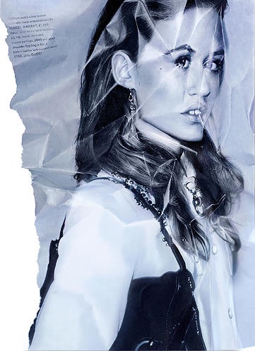 Sa série « Trash » illustre sa vision critique du monde moderne qui vit au dessus de ses besoins, d’une société dangereusement réglée sur « avance rapide », coupable d’un vaste gâchis résultant d’un capitalisme obèse. Notamment au sein de l’industrie de la mode où la beauté aussi subjective et plastique soit elle, se laisse contempler dans la précipitation et dont la date de péremption toujours plus raccourcie va de pair avec l’absurde diktat « du bon âge ». C’est à dire 14 ans.