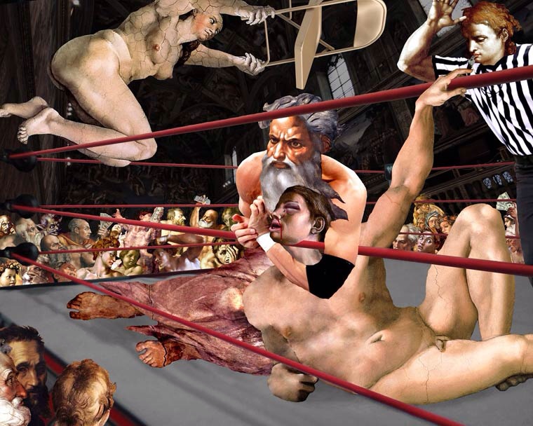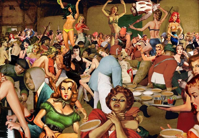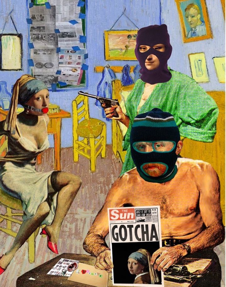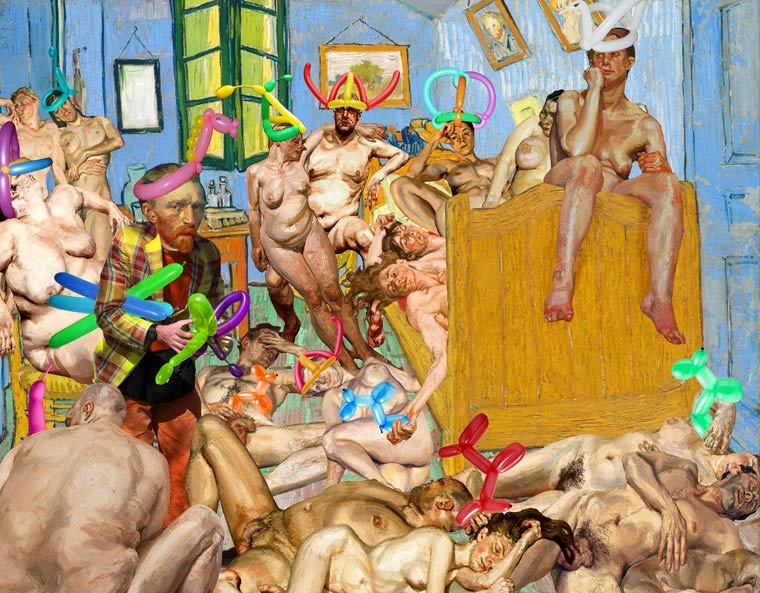 Van Gogh apprécierait le clin d’oeil à défaut de faire la sourde oreille! Dans ses collages parodiques olé olé et perturbants, l’artiste américain Barry Kite détourne les oeuvres les plus mythiques de la peinture classique en scènes parfois absurdes, souvent trash et 100% moderne, tel un frotti-frotta entre l’histoire de l’art et les dérives du monde actuel, relayé par internet et ce toujours avec un zeste d’humour! Ainsi Van Gogh et la Joconde s’exposent cul et chemise, indécollables, clopes au bec en mode Bonnie and Clyde, preneurs d’otages ou règlant leur compte sur un ring de boxe, quand ils ne jouent pas au saxophone éméchés! On parle alors d’art aberrant!