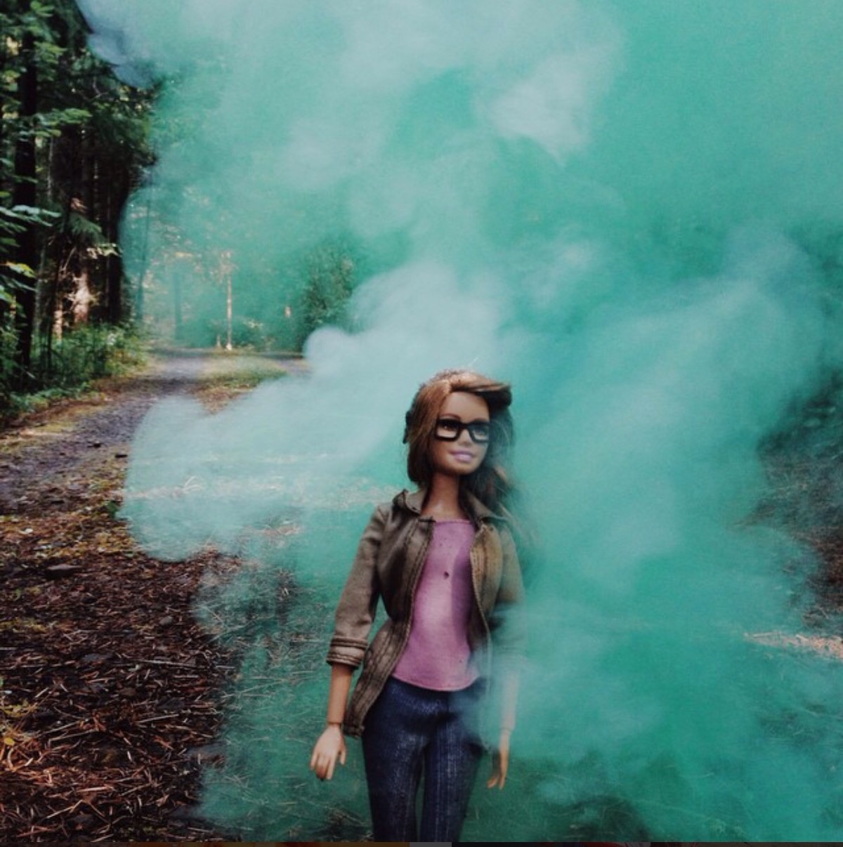 Une brune en plastique maquillée de sarcasmes, avec environ 992 000 followers sur son compte Instagram « SocialityBarbie« , des raybans géantes, un goût prononcé pour les road trips, troquant talons aiguilles et robes de princesse pour un look résolument hispter des bois.
