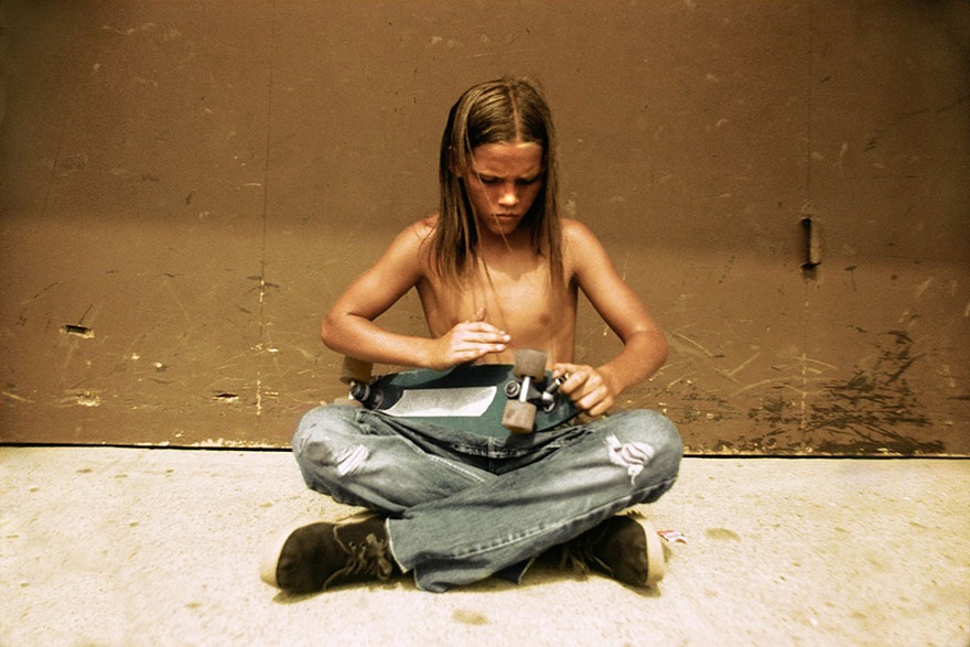 « Au milieu des 70s la Californie a connu une sécheresse sans précédent, les piscines et fossés de drainages ont été vidés, devenant alors un terrain de jeu rêvé pour les jeunes skateboardeurs, notamment pour les Z-Boys révolutionnaires du genre », relate le photographe Américain qui pendant 3 ans s’est immergé dans le quotidien de la jeunesse folle de glisse de Los Angeles, Venice Beach et de San Francisco.