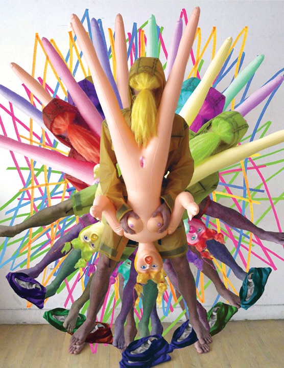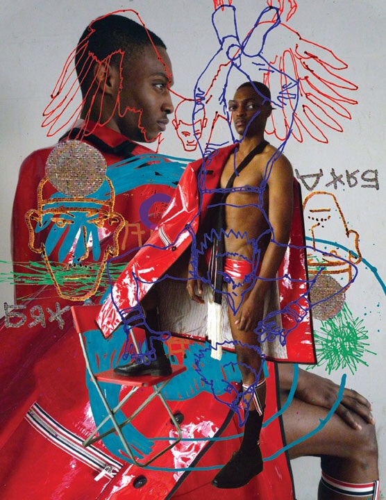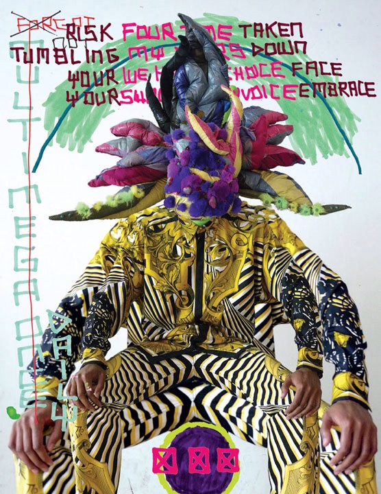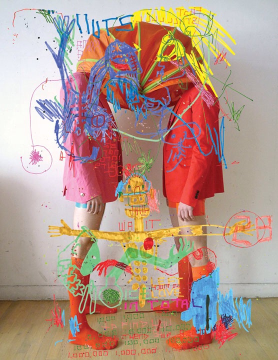 Leur série « Entropy Parade » prend la forme d’un portfolio cadeau pour l’anniversaire du magazine Flaunt. Dézingueurs de pensées triviales, le duo dans la vie comme dans l’art fait sauter les pantalons et vissent des accessoires loufoques sur les boites crâniennes dans leurs collages multi-couches. Leur vision? L’adolescence est un espace-temps de transition où créativité et insouciance défient puis narguent tout sens de l’ordre par apologie de l’illogisme.