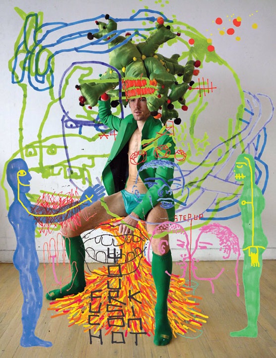 Un défilé de beaux garçons qui dégénère dans le plus grand des chaos visuel tagué de tonicité candide et ridicule. Exilé politique sans complexe, l’artiste Russe Slava Mogutin gribouille la mode avec son lover américain Brian Kenny et téléporte le désordre dans les têtes.