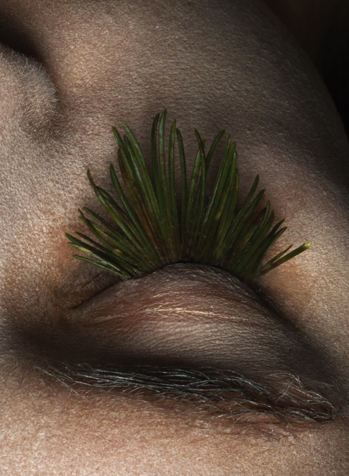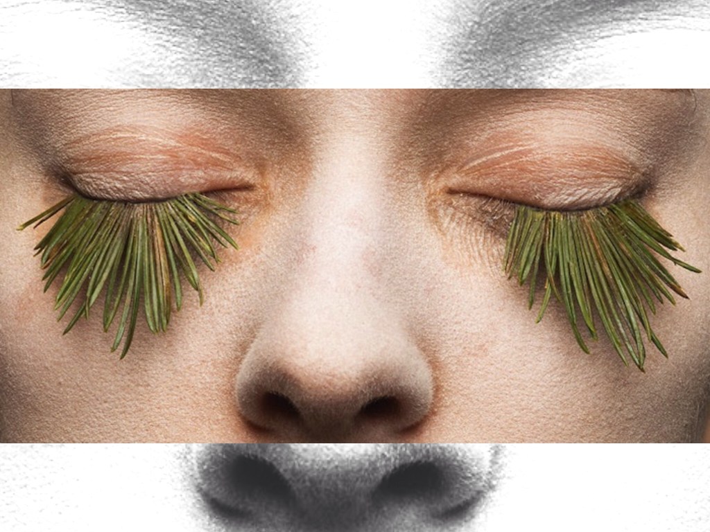 Publicité mensongère? Alors qu’un produit de beauté doit seulement contenir 1% d’éléments naturels pour être étiqueté en tant que tel, Mary Graham tend à faire voler en éclat cette triste vérité en créant des cils sans chimie ou produits de synthèse! Ainsi une combinaison de neige et d’oeuf substituée à de la colle, vient gluer des cils à base de brins d’herbe et d’aiguilles de pin sur les paupières d’un mannequin.