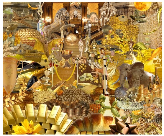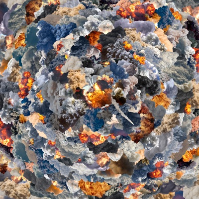 Une rebelle ésotérique de l’espace! A mi-chemin entre éveil d’une galaxie et auto-destruction programmée, ses assemblages anti-intelligence artificielle, illustrent le crash de la population dans le capitalisme, dès lors coincée dans une fusion entre le cyber-espace et l’hyper-réalité. S’y superposent des paysages post-apocalyptiques, interreliés à des lambeaux de magazines de mode et de décoration, narrateurs ici d’une hémorragie des biens de consommation et d’un futur non pas en pointillés mais en vol habité vers l’infini néant! Et cela, visible popcorn en main sur un écran vacillant d’une TV ou d’un ordinateur!
