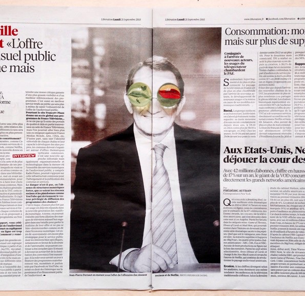 Facile à dire, facile à faire? Bonbons Vichy, perles à paillettes, punaises, peau de banane, préservatif ou cure-dents, en masquant le minois photogénique de mannequins à l’aide d’éléments aléatoires à ne pas laisser entre les mains des enfants, Frédérique Daubal ne tient pas ici à prendre sa revanche sur ces plastiques de rêve mais à servir la fantaisie de la vie quotidienne sur un plateau matérialiste! Ses manipulations intuitives surfent ainsi sur la vague contemporaine du surréalisme, un processus nommé « surimpression »! Entorse à la règle, l’espiègle Jean-Pierre Pernaut s’est incrusté dans la série, les yeux couverts de deux billes hilarantes!