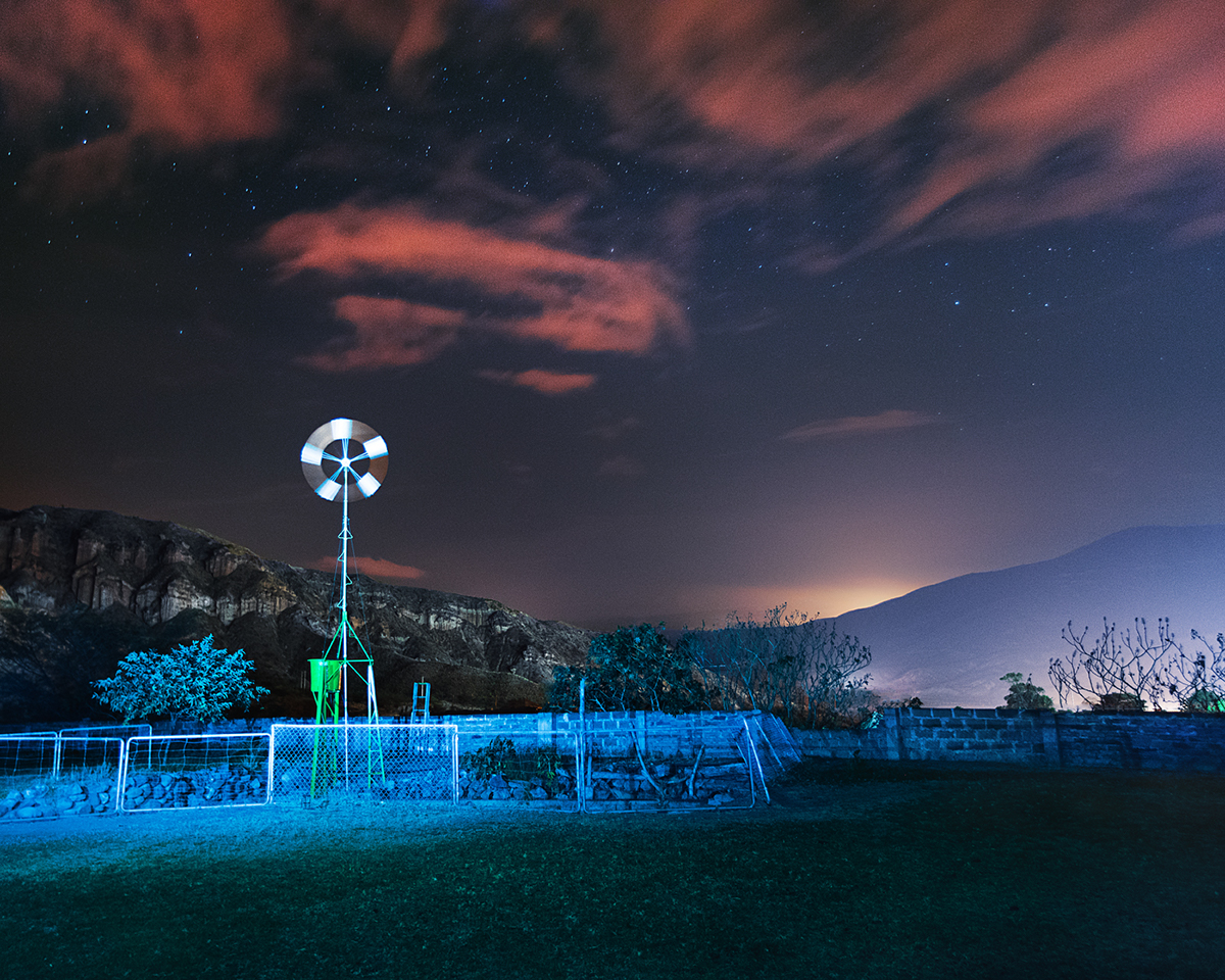 Ses souvenirs d’Equateur en vélo ne font ici pas entorse à la règle. Nappée de couleurs saturées et fluo, sa série téléporte de nuit à travers la vallée du Chota au nord du pays. Telle une déflagration d’illuminations maitrisées donnant lieu à des scènes à l’orée d’un nouveau monde!