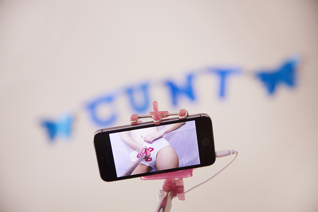 Sans aucune once d’ironie ni de sarcasme, cette artiste de 23 ans basée à Londres compte déjà une pléiade de faits d’armes artistiques sanglants et polémiques. Sa série « There will be Blood » sur les règles publiée en 2012 dans Vice exhibait des photos de femmes dans leur quotidien aux culottes dégoulinantes de sang, le ton était donné.