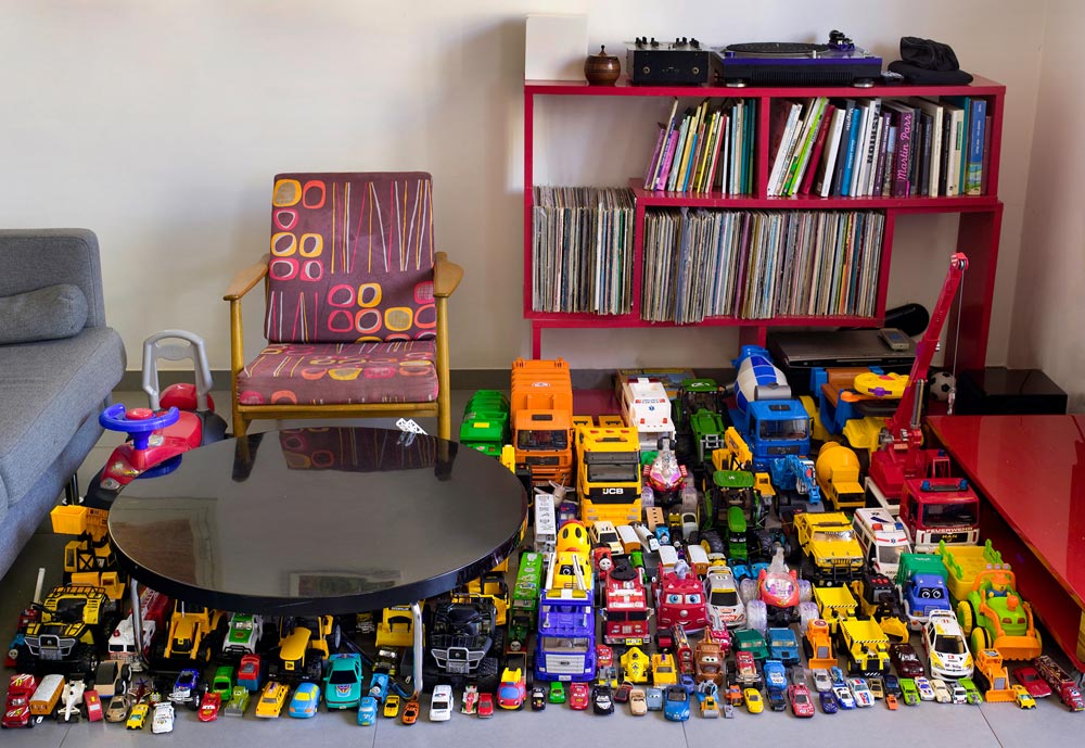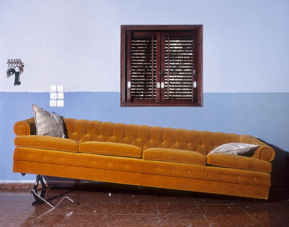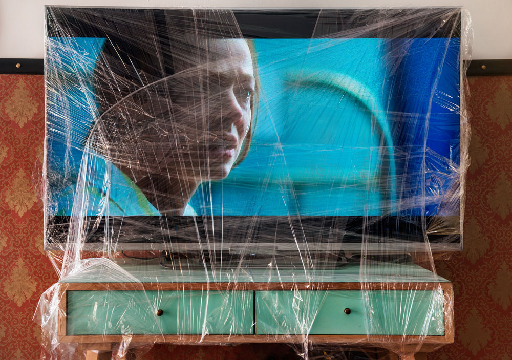 Une femme se goinfrant littéralement à une table débordante de spaghettis bolognaise, un tapis kitsch finement découpé pour n’en laisser que le cadre, des multi-prises se chevauchant à l’infini, un écran plasma allumé mais encore habillé de son film plastique et une nouvelle expression : Mettre les mains dans le toaster! Rubi Lebovitch revisite des scènes de la vie quotidienne, en s’amusant à dépasser l’entendement et la logique.